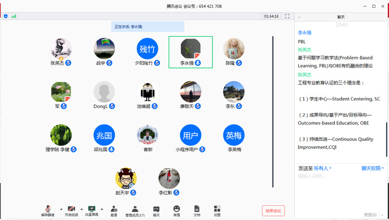 理学院力学系党支部于2020年5月11日,通过腾讯会议开展了线上教育教学交流及课程思政建设研讨会,研讨会主要涉及两个议题。首先,就力学系系线上教育教学的开展情况,讨论如何完善线上授课的课程考核及评价体系,并就疫情期间教学大纲的执行问题进行说明。随后,国家精品在线开放课程负责人、校级教学名师李永强教授介绍了他对“课程思政”的观点和体会,提倡中青年教师要向老教师学习,在教学工作中提升爱国、爱校、爱专业的情怀。李永强教授结合理论力学课程,提出了PBL问题导向教学方法如何与教学环节相结合,同志们对这一教学方法和OBE理念展开了热烈的讨论。