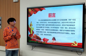 针对《建议》中的前三条,第一组从“全面建成小康社会,开启全面建设社会主义现代化国家新征程”、“十四五时期经济社会发展指导方针和主要目标”和“坚持创新驱动发展”三大块对文件进行了解读,并结合强国、创新、人才等关键词分享感悟;第二组结合生活中的例子,对“加快发展现代产业体系,推动经济体系优化升级”、“优先发展农业农村,全面推进乡村振兴”等方面进行了阐述;第三组则从文件中每一条建议的内容入手,分析我国当前仍然存在的问题并给出了该建议相对应的解决措施;第四组则从“进一步改善人民的生活品质、总体国家安全观、国防和军队的现代化”对《建议》剩余的内容进行了解读。