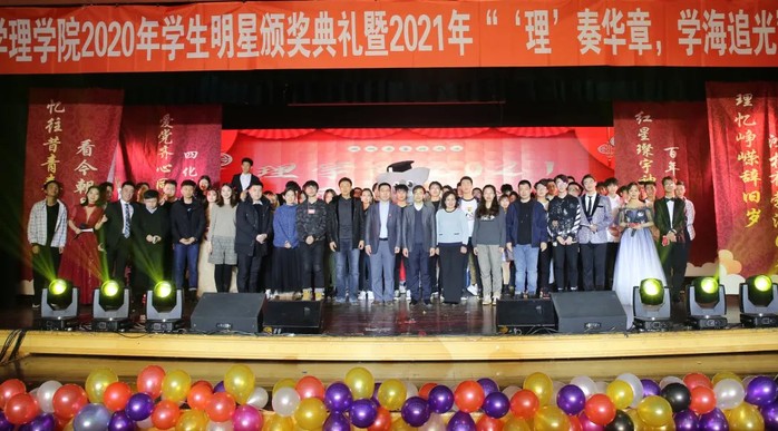 12月22日,理学院2020年学生明星颁奖典礼暨2021年“理奏华章·学海追光”元旦晚会在学生活动中心多功能厅隆重举行。校党委宣传部、团委、学生工作处、创新创业学院等部门相关负责人;学院领导班子、各系领导、班导师以及学生工作办公室全体教师应邀出席晚会。
