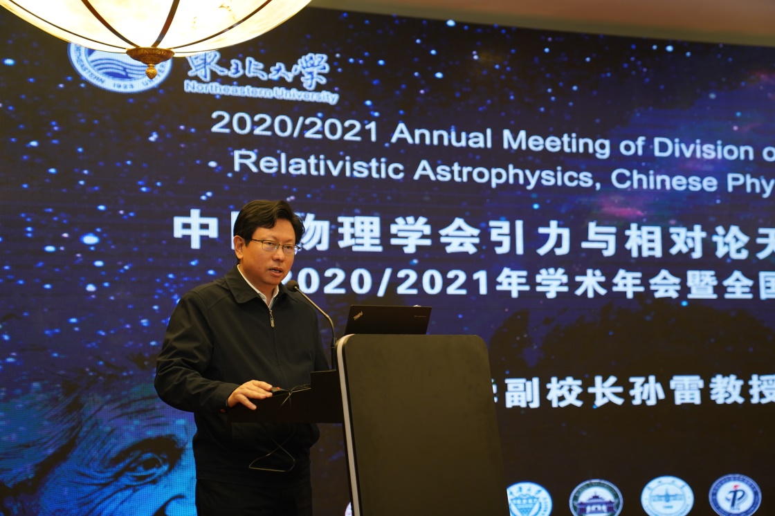 4月23—28日,中国物理学会引力与相对论天体物理分会2020/2021学术年会暨全国代表大会在东北大学举办。此次会议由中国物理学会引力与相对论天体物理分会主办,东北大学承办,北京大学、北京师范大学、重庆大学、武汉大学、兰州大学和中国科学院理论物理研究所协办。引力与相对论天体物理分会委员会主任、中国科学院院士蔡荣根研究员,东北大学副校长孙雷,东北大学理学院相关负责人以及来自全国的引力、宇宙学以及天文与天体物理领域的专家学者500余人参加了会议。
