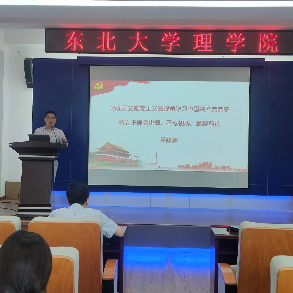 6月23日下午,理学院党委书记吴政新以“站在历史唯物主义的视角学习中国共产党党史,树立正确党史观,不忘初心,继续前进”为题,在建筑学院207室为学院师生党员讲授党课。学院党委班子、各党支部支委及学院机关全体党员参加党课学习。党课由学院党委副书记、副院长(兼)王业主持。