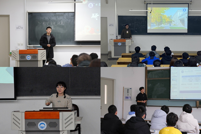 保研学生学习经验分享交流会邀请了理学院数学系邓纪荣、物理系张若涵、化学系黄玮玲、力学系杜文强,四位同学已分别报送至中国人民大学、中国科学技术大学、复旦大学、北京理工大学。他们通过讲述自己的保研历程,阐述了大一学习的重要性;最后鼓励同学们在大学期间,合理规划自己的时间,积极参加各类竞赛活动。