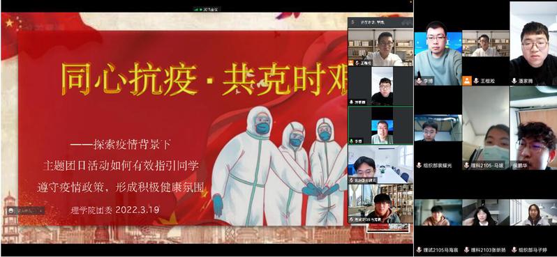 3月19日下午,理学院分团委于线上召开“同心抗疫·共克时艰”团支部工作研讨会。学院分团委书记、分团委组织部及团支部书记代表出席本次会议。