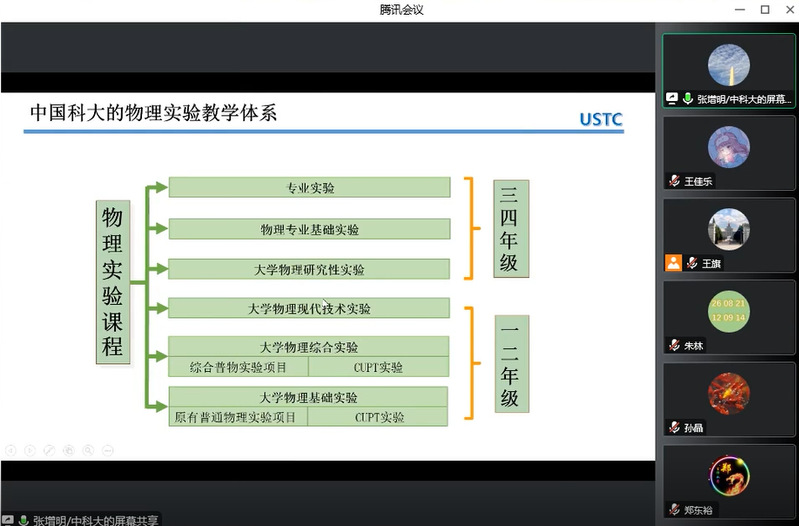 会上张增明教授以“研究型物理实验教学”为报告题目,介绍了中科大的物理实验教学体系,强调了开展研究型物理实验的重要性;徐平教授以“以研促教,提升实验课程教学能力”为报告题目,介绍了研究型物理实验教学模式探索的整体规划,提出了高校实验教师应该以研促教的观点;蔡志岗教授以“实验技术与实验教学”为报告题目,围绕实验技术的研发和分类,提出了开展实验技术研发,功夫在平时的观点。