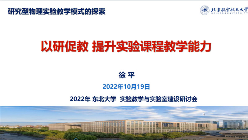 2022年10月19日下午,东北大学物理实验教学中心线上召开了实验教学与实验室建设研讨会。中国科学技术大学物理实验教学中心主任,国家级实验教学示范中心联席会物理学科组组长,教育部大学物理课程教学指导委员会委员,教育部大学物理课程指导委员会大学物理实验专委会主任张增明教授,北京航空航天大学未来空天技术学院副院长,教育部大学物理课程教学指导委员会委员徐平教授以及中山大学物理实验教学中心主任,全国物理实验教学研究会副理事长蔡志岗教授应邀参加会议,东北大学物理实验中心全体教师以及东北部分高校实验教学中心教师参加会议。会议由东北大学理学院王旗副院长主持。