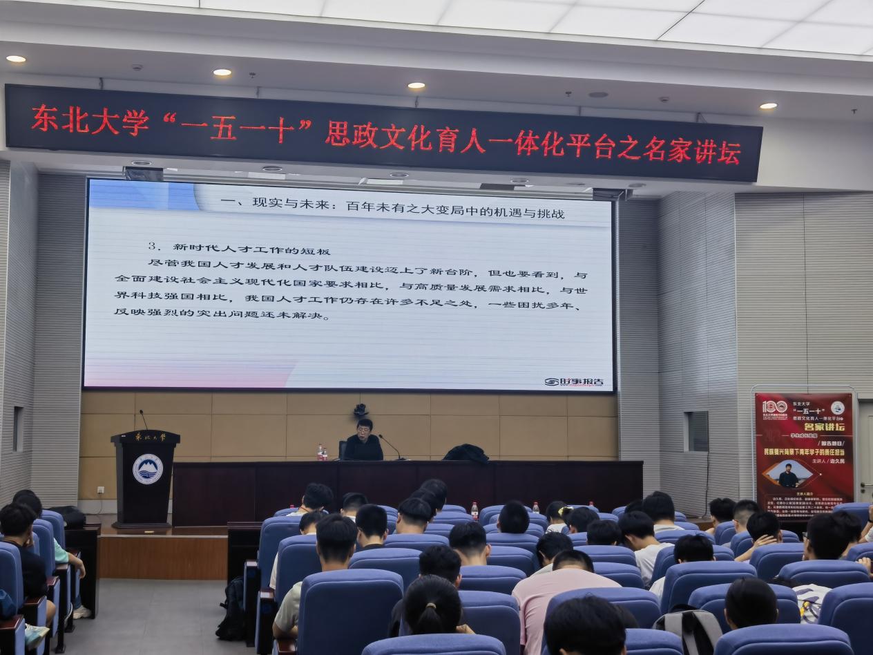 边久民老师分别从世界百年未有之大变局、新时代对人才的要求、青年学子的责任担当和百年东大的青年事迹四个方面与学生展开交流,并对在场学生提出了殷切期望。他强调,我校具有百年悠久历史和光荣爱国主义传统,东大学子要主动担负起时代使命,将“小我”融入“大我”,为建设社会主义现代化强国贡献属于自己的青春力量。