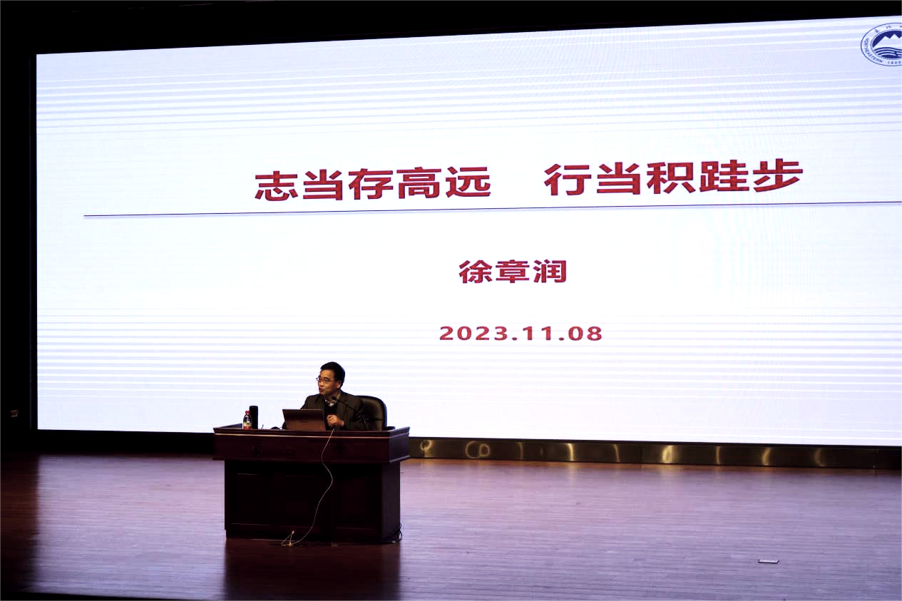 11月8日晚,理学院在汉卿会堂多功能厅举办院长大讲堂活动。理学院院长徐章润教授为理学院2023级本科生作题为《志当存高远,行当积跬步》的专题报告。