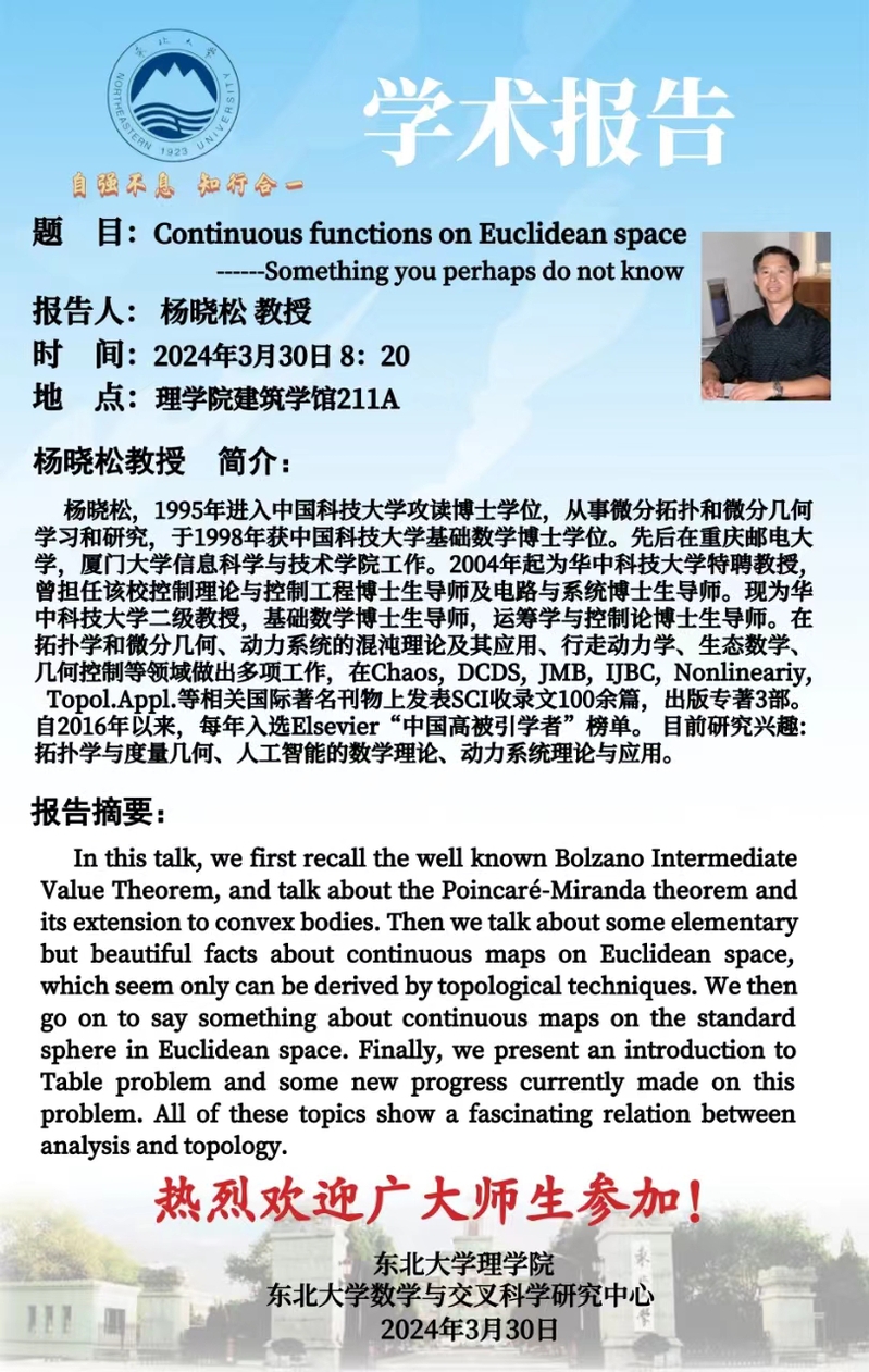 学术报告通知-Continuous functions on Euclidean space-Something you perhaps do not know