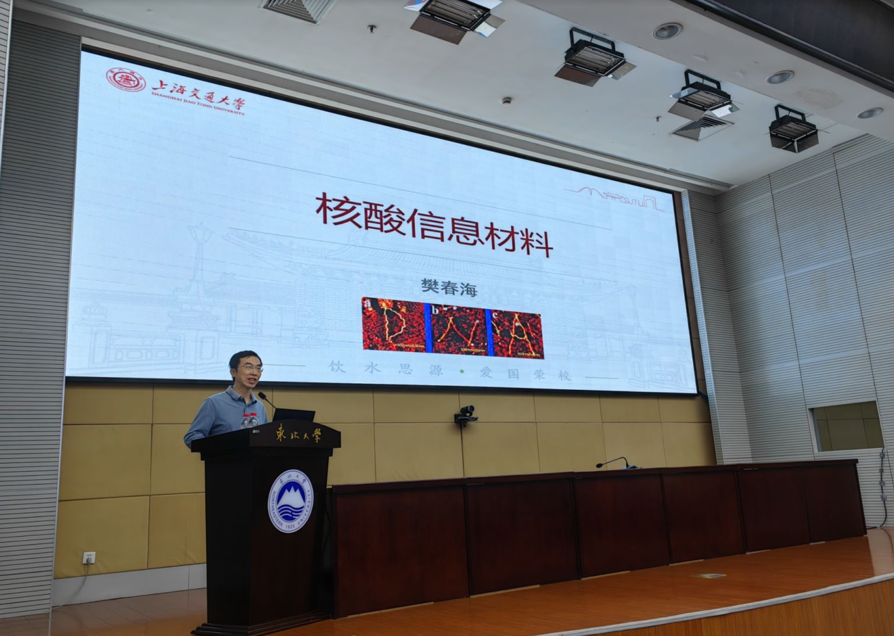 5月8日,上海交通大学樊春海院士及华东师范大学田阳教授在综合楼822作了题为“核酸信息材料”和“活体脑分子图谱分析”的专题报告。报告由理学院院长于永亮主持,理学院相关专业老师及学生积极参加了此次报告会。