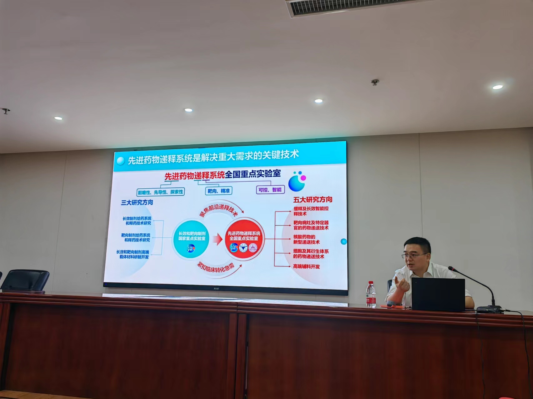 在报告会上,顾臻教授提出了“新药创制是事关国家战略的重大需求”的观点,并阐述了新药创制作为科技自立自强的核心支撑点,在提高人民生命健康中扮演着至关重要的角色。顾臻教授深入浅出地将团队近年来的最新研究成果进行了详细讲授,其中包括:血糖响应性智能胰岛素贴片、新型I-insulin的设计和模拟胰岛细胞仿生递药系统的研发;融合了人工智能等多学科利用飞行器进行“靶向”递药的交叉成果;微针在青春痘、眼周皱纹等医美方面的产品化尝试;基于肿瘤微环境和CAR-T等免疫治疗的靶向给药系统的构建;以及基于血小板和脂肪细胞新型制剂的研发进展。