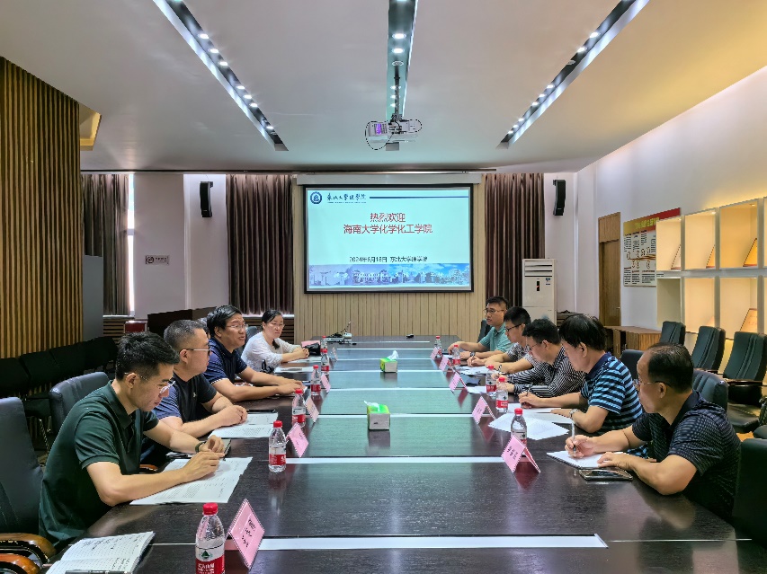 6月18日上午,海南大学化学化工学院副院长李满荣一行来我院围绕本科教学工作进行调研交流。理学院副院长王旗、化学系副主任韩义德、王军、宋禹等参加座谈。