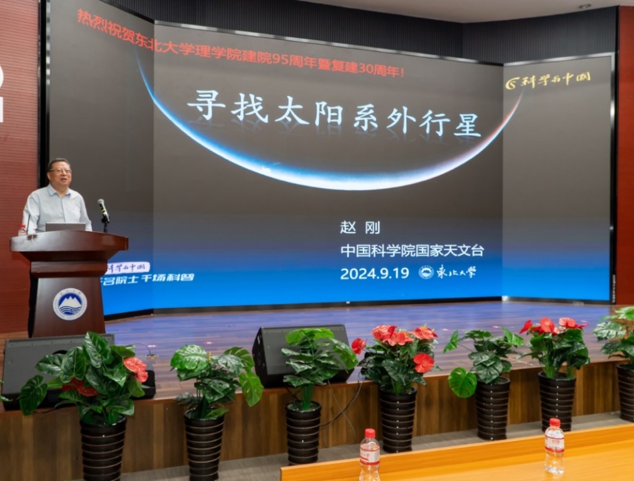 9月19日,正值东北大学理学院庆祝建院95周年暨恢复建院30周年之际,中国科学院国家天文台研究员、LAMOST科学委员会主任赵刚院士,受邀在科学馆201建龙学术报告厅为全校师生作题为《寻找太阳系外行星》的科普讲座。本次讲座由辽宁省宇宙学与天体物理重点实验室主任张鑫教授主持,全校近200名师生到场聆听。