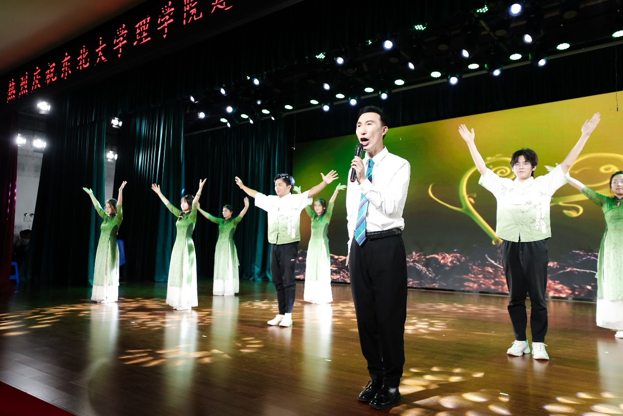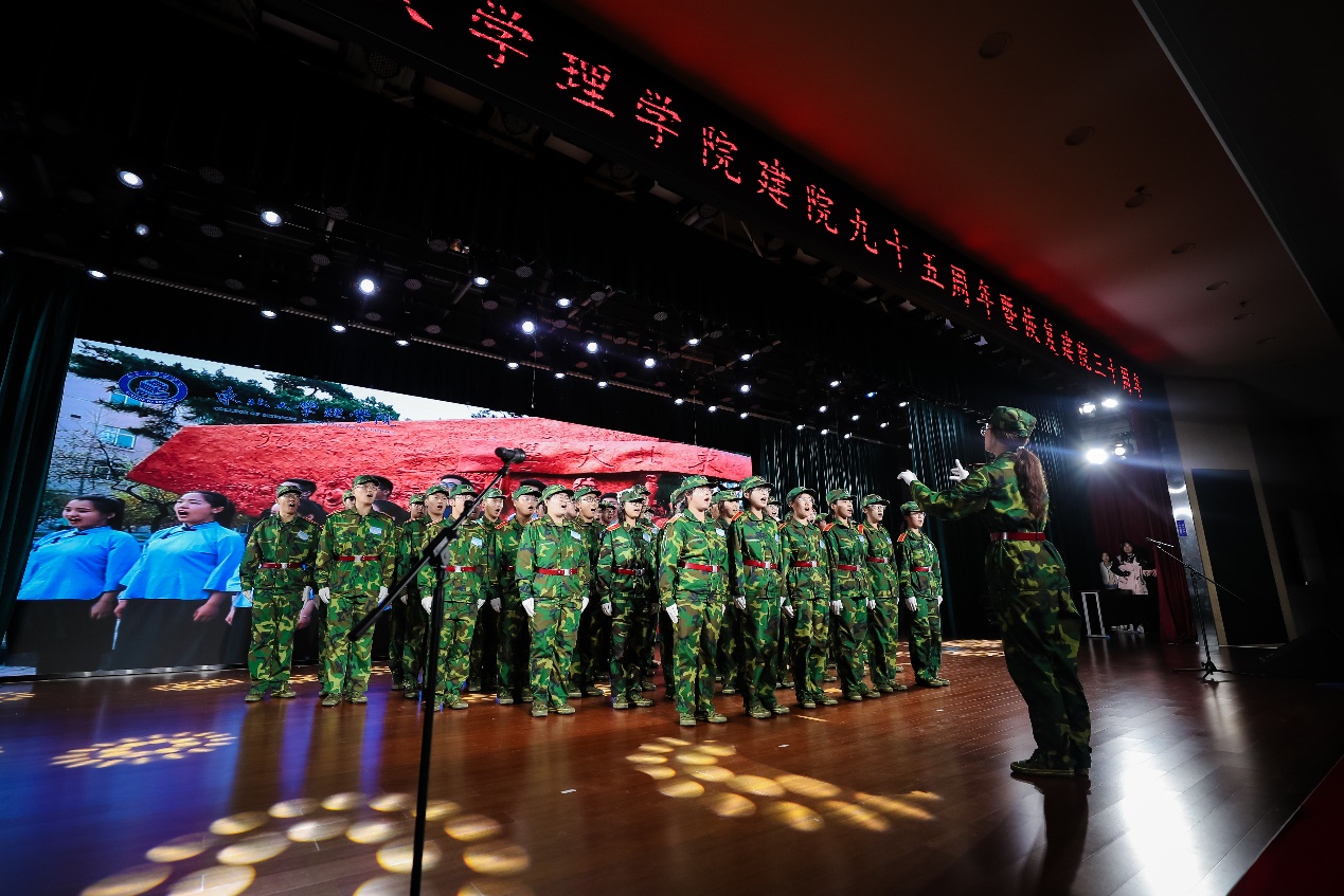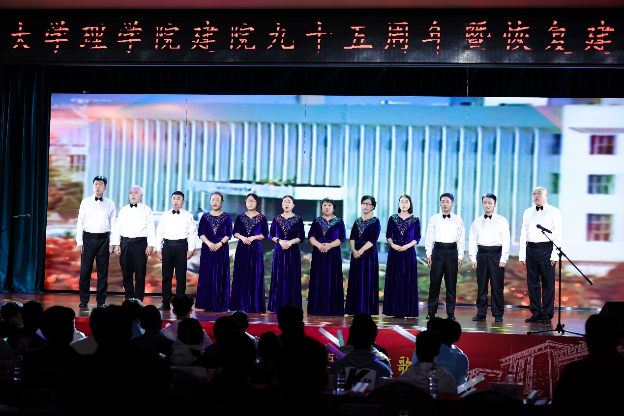 会后举行了庆祝理学院建院九十五周年暨恢复建院三十周年“岁月颂 理学情”歌会。歌会全部由理学院师生自编自导自演。歌会共分为《九五风雨,执笔同书》《卅载华章,筑梦前行》《从心启航,继往开来》三个篇章。以话剧、朗诵、合唱、舞蹈等多种艺术表现形式,配合场景融入式的演唱,为与会师生带来一场沉浸式的视听体验。