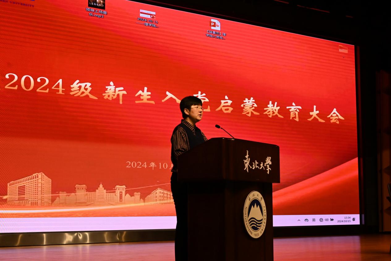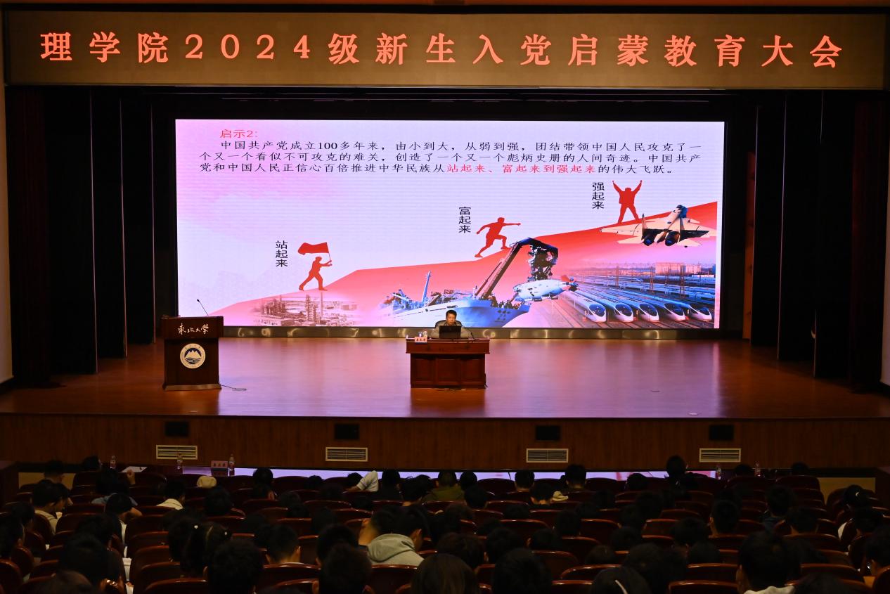 为深入贯彻落实党的二十届三中全会精神、全国教育大会精神,落实学校第十五次党代会精神,进一步践行为党育人、为国育才的初心使命,引导青年学生坚定政治立场、端正入党动机、积极向党组织靠拢,理学院于10月15日在汉卿会堂蔡冠深报告厅召开2024年新生入党启蒙教育大会。校党委常委、党委办公室主任姜玉原应邀授课,理学院党委书记李晓璐作总结讲话,大会由理学院党委副书记兼副院长马犇主持,2024级500余名新生参加。