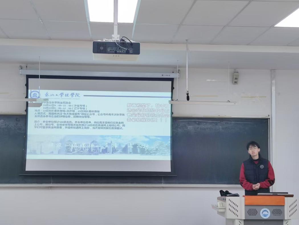 10月18日,理学院2021级本科生秋季就业双选会动员大会顺利召开。理学院学生工作办公室主任郭娜、2025届毕业生辅导员解家岩出席大会。