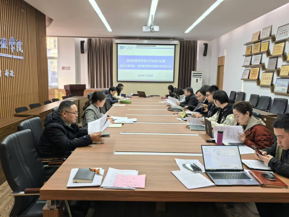 11月20日下午,理学院机关在建筑馆211A室召开“教育思想大讨论研讨会暨深化改革创新,提高管理服务质量和效能研讨会”,贯彻落实《理学院教育思想大讨论实施方案》,进一步提升学院机关管理服务水平和履职担当能力。学院副院长王晓宇,学院党委副书记、副院长马犇、学院机关全体工作人员参加会议。会议由王晓宇主持。