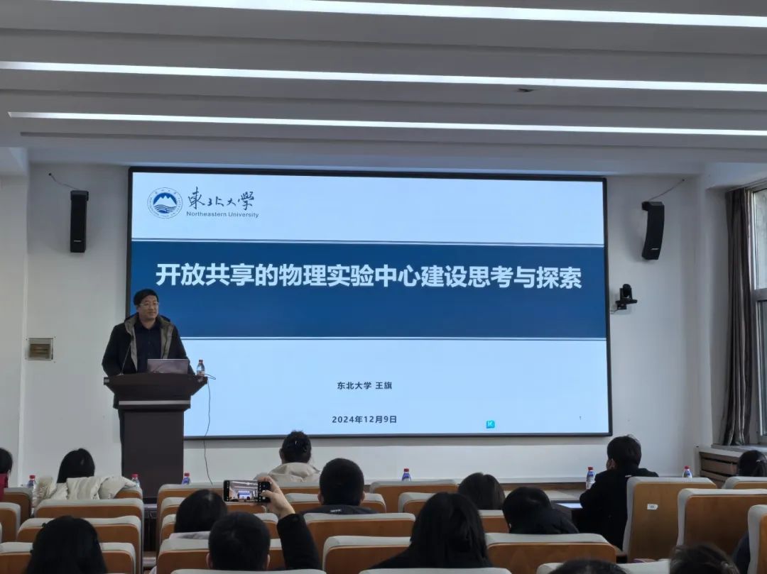 理学院副院长王旗以“开放共享的物理实验中心建设思考与探索”为题做了主题报告,他从时代背景、中心现有建设成果及未来规划等方面,围绕中心课程体系、硬件设施、师资队伍及管理机制等方面进行系统讲解。