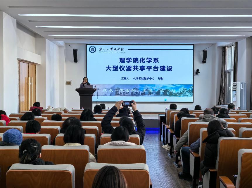 化学实验教学中心刘敏老师就理学院化学系大型仪器共享平台建设、管理及运行情况做了简要介绍。