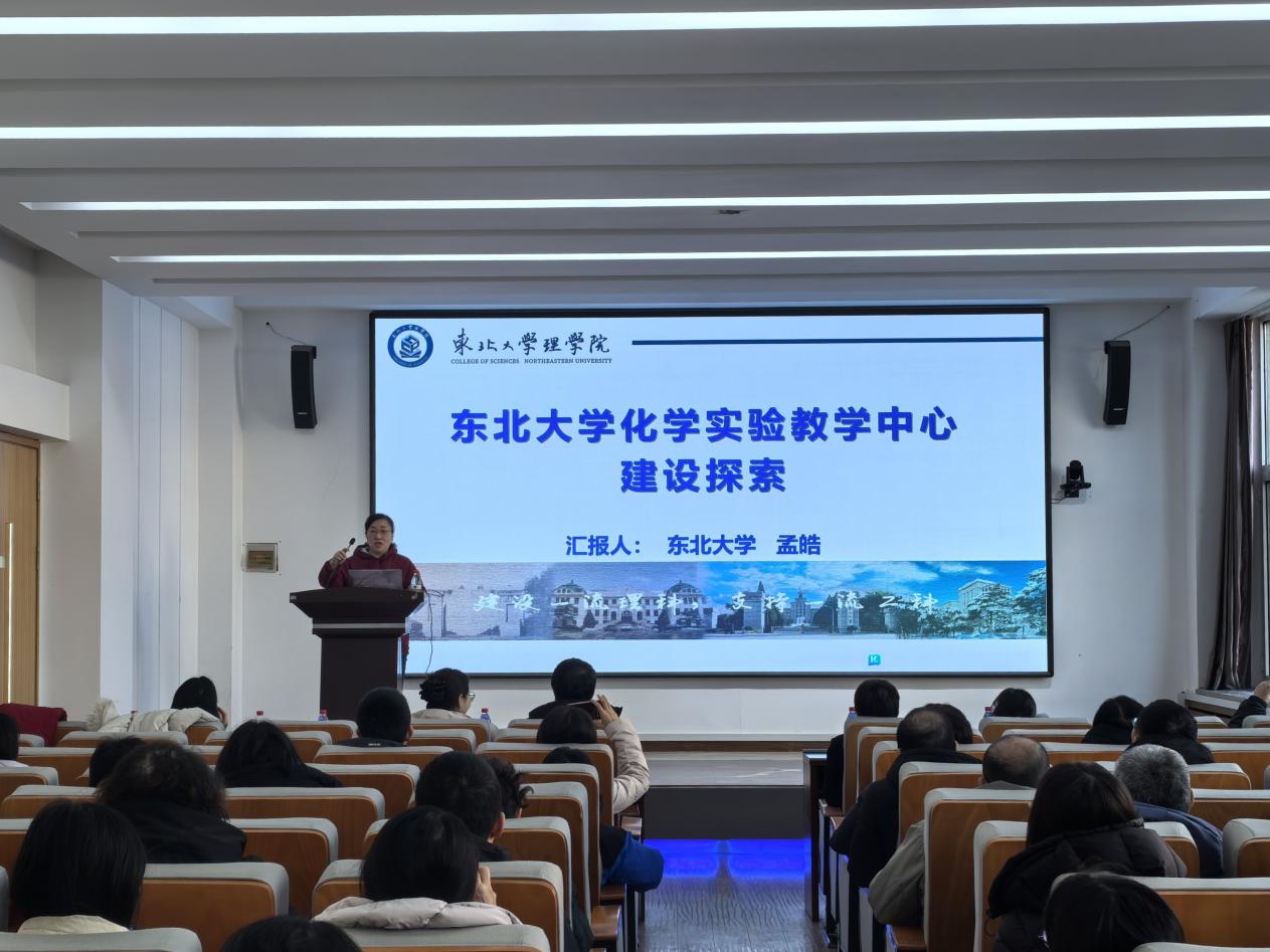 化学实验教学中心副主任孟皓做了题为“东北大学化学实验教学中心建设探索”的主题报告,报告从中心运营及管理机制、课程建设及支撑竞赛方面的建设成效进行了汇报。
