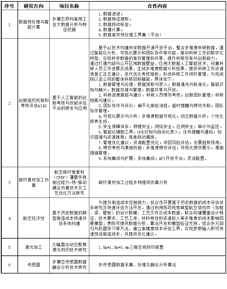 为进一步推动产学研深度融合,促进科研成果的转化与应用,近日,东北大学理学院与中航工业沈飞创新研究院开展了一系列合作交流活动。沈飞作为我国航空工业的重要力量,长期致力于航空装备制造领域的技术研究与创新,与我院在多个研究方向上具有广阔的合作空间,现将沈飞创新研究院合作需求情况公布如下: