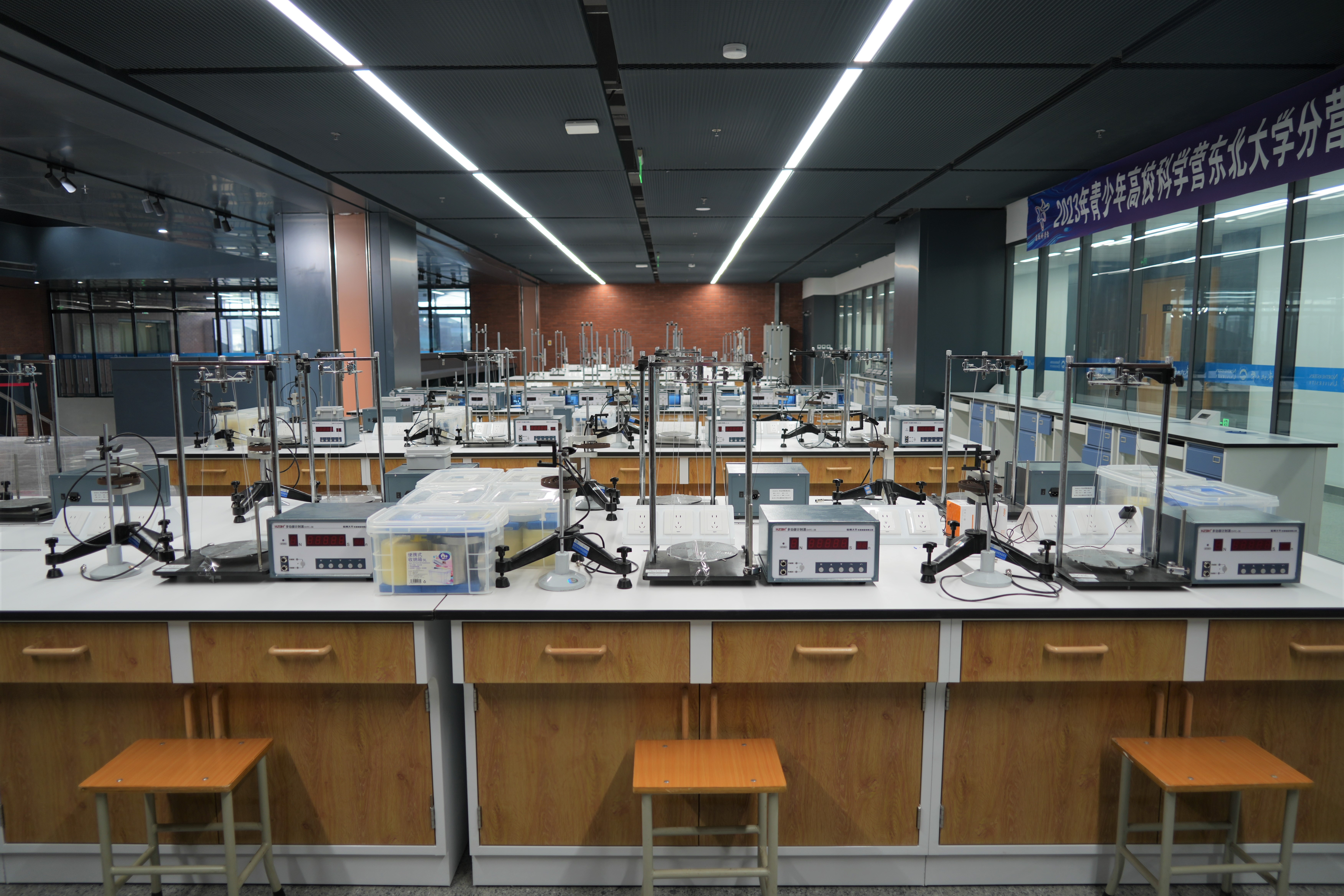 物理实验教学中心位于南湖校区的建筑学馆和浑南校区的生命学馆,总使用面积约4000平方米,设有:基础物理实验室、近代物理实验室、应用物理实验室、物理演示实验室、本科生物理实验创新基地、虚拟仿真实验室、浑南校区物理实验室。目前实验教学中心共有仪器设备4000余台,总价值约4000万元,可开出实验项目100余项。物理实验教学中心在2006年首批进入到辽宁省实验教学示范中心。中心拥有基于计算机的虚拟仿真项目50余项,VR虚拟仿真项目5项,仿真软件2项,2017年评为辽宁省虚拟仿真实验教学中心,2019年,VR核物理实验获评国家级虚拟仿真实验教学项目。大学物理实验课程在2009年评为省级精品课,2020年评为辽宁省一流线下课程。