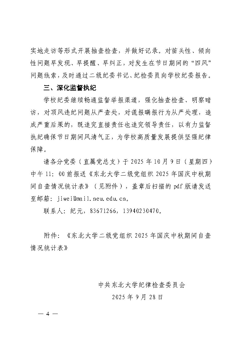 关于 2025 年国庆中秋期间严格落实中央 八项规定精神、 从严纠治“四风” 的通知