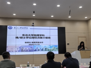 在推介报告中,张缤元全面展示了东北大学物理学科的发展历程、学科平台、师资力量、研究方向以及人才培养成效。她强调,物理学科目前拥有完整的高层次人才培养体系,具备一级学科博士学位授权点和博士后流动站。学科建设持续进步,综合实力不断提升。