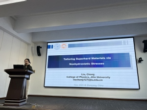刘畅教授以《复杂应力下超硬材料的结构设计》为题,分享了其在高压极端条件下材料设计方面的最新研究成果,揭示了复杂应力对材料性质的调控机制。刘晗博士围绕非静水应力对典型富氢超导体结构与物性的调控研究,深入探讨了富氢化合物在非静水应力下的超导行为,为高温超导材料的设计提供了新思路。邵学成教授介绍了基于无轨道密度泛函理论的大尺度计算方法,展示了在提升材料模拟效率与规模方面的创新进展。于国栋副教授从能带杂化角度出发,解析了双层转角石墨烯的魔角成因,为理解转角体系中的电子行为提供了新视角。