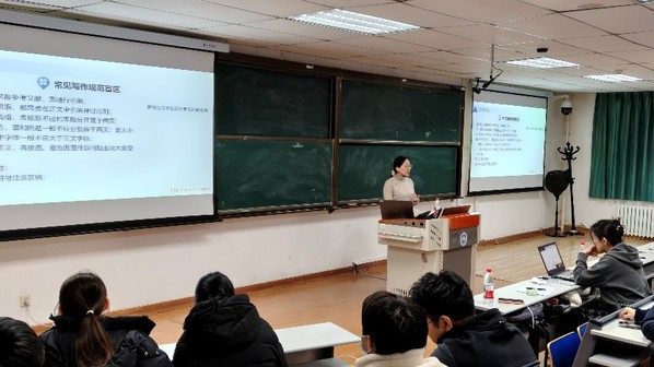 为加强硕士研究生学位论文写作规范,提升学位论文质量,理学院于11月27日下午在采矿馆301组织开展了《学位论文写作指导及盲审细则解读》专题培训。本次培训由理学院副院长杨婷主讲,全体2023级硕士研究生参会。