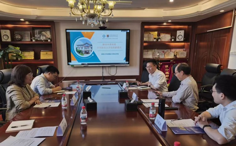 钱金花对暨伯学院的热情接待安排表示感谢,并介绍东北大学理学院在教学、科研、国际化建设等方面情况。她表示,暨伯学院作为中外合作办学的成功典范,其办学模式与管理经验具有重要借鉴意义,希望以此次调研为契机,进一步推动双方在人才培养、课程共建等领域的深度合作。随后,双方围绕国际化办学路径、联合学位项目、教学管理机制等议题展开深入而富有成效的交流。