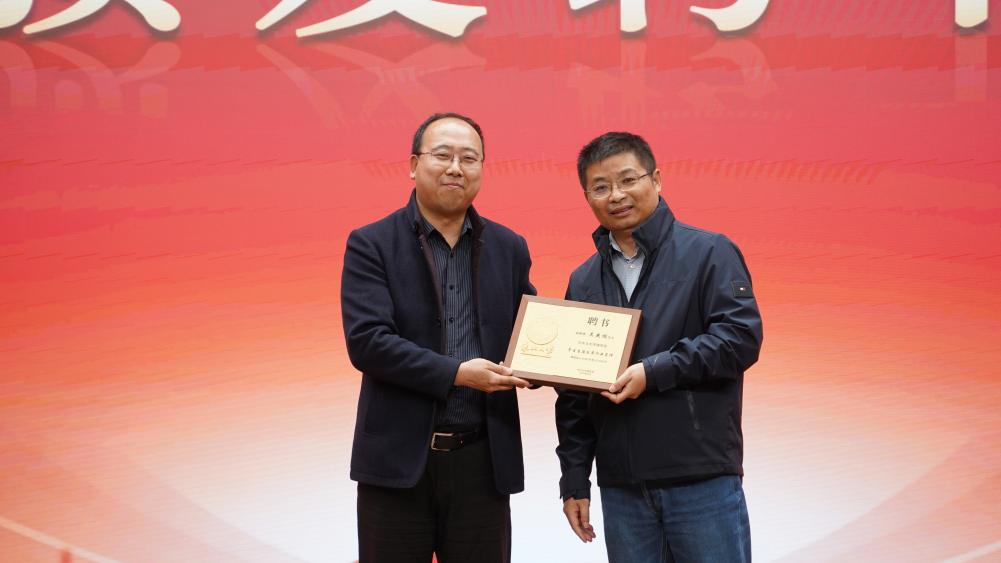大会为获得2024-2025学年广州迈源科技奖学金的十名同学颁奖,吴燕鹏校友上台为获奖学生颁发奖学金证书。于永亮为吴燕鹏颁发学生生涯发展行业导师聘书。吴燕鹏从自己的求学经历出发,为同学们讲述了自己的创业历程与工作经验,勉励同学们找到适合自己的前进方向,努力成长为能担重任的青年人才。