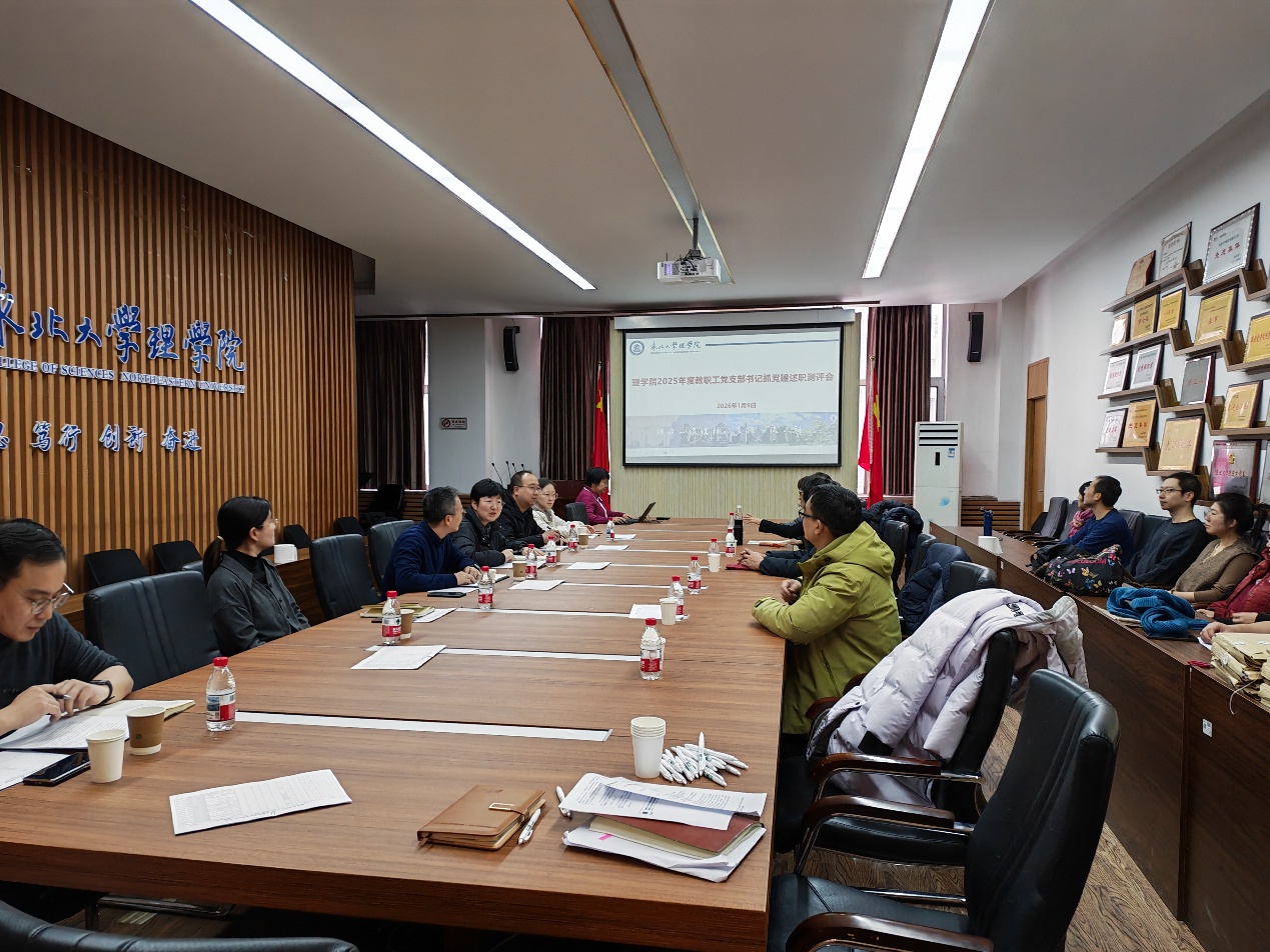 2026年1月9日理学院党委在建筑馆211A会议室开展教职工党支部书记述职测评会,学院党委委员、教职工党支部书记及支委参加会议,党委书记李晓璐主持会议。