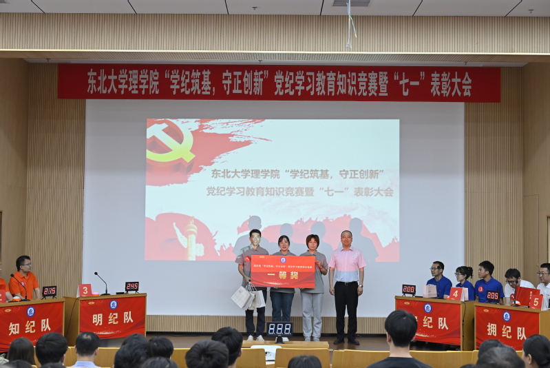 6月19日,理学院党委“学纪筑基,守正创新”党纪学习教育知识竞赛暨“七一”表彰大会在宁恩承图书馆报告厅举行。校党委副书记、纪委书记吴豪伟,党委宣传部常务副部长闫研,理学院领导班子成员和各支部师生党员出席活动。