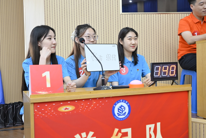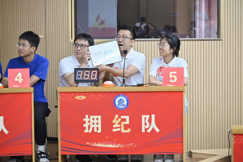 会上进行了“学纪筑基,守正创新”党纪学习教育知识竞赛,共有来自不同支部的18名师生党员代表组成了6支队伍参与竞赛。竞赛分为热身题、必答题、抢答题、风险题以及后援团答题五个环节。参赛选手依托扎实的党纪知识储备,表现出极强的反应能力和专业素养。经过紧张激烈的角逐,化学系党支部荣获一等奖,机关和力学系党支部荣获二等奖,数学系、物理系党支部和学生党总支荣获三等奖,化学系党支部的宋禹同志荣获全场个人答题MVP奖。