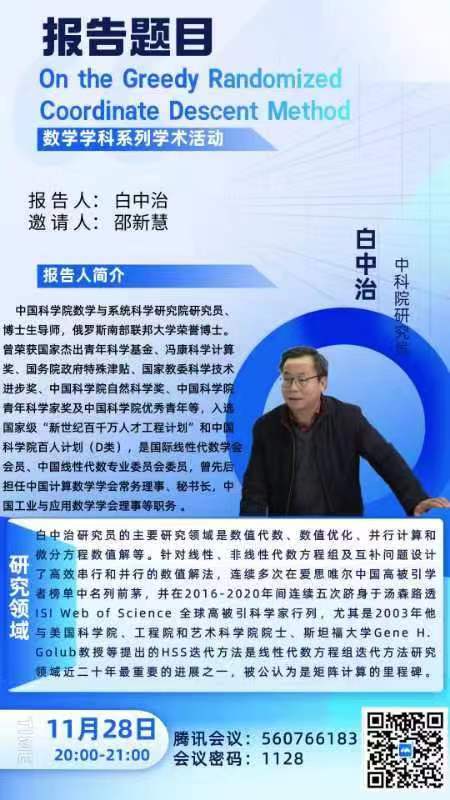 中国科学院数学与系统科学研究院:白中治研究员学术报告