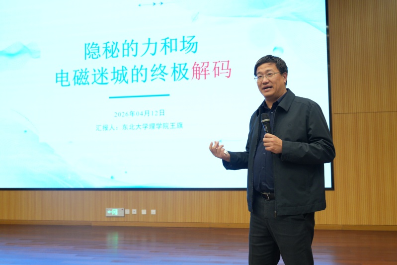 2026年4月12日下午,东北大学理学院物理系王旗教授在辽宁省科技馆举办的2026年度科学营系列活动上开展了一场《隐秘的力和场——电磁迷城的终极解码》的大型科学讲座,为现场百名小学4-6年级的学生们带来了一场融合历史传承与现代科技的电与磁的科学盛宴。